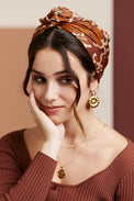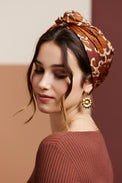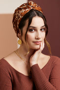 Turban facile à nouer imprimé fleurs marron fond écru