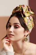 BANDEAU CHEVEUX À TIGES METALLIQUES imprimé floral rétro jaune moutarde multicolore