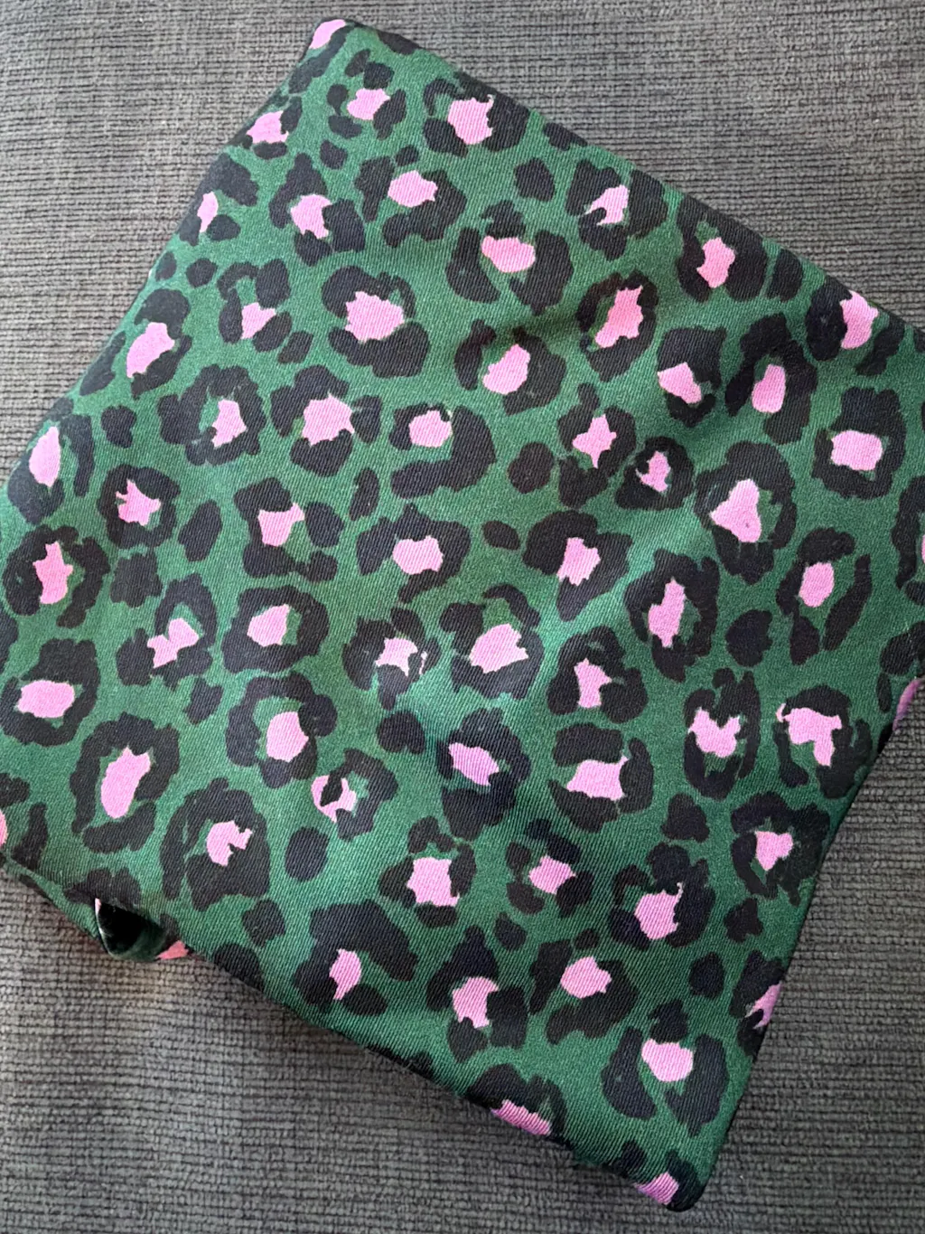 With its bold deep green and powder pink colors, this turban revisits the leopard print with a modern and fun twist! Its classic retro-style knotting makes it a must-have in your wardrobe.
