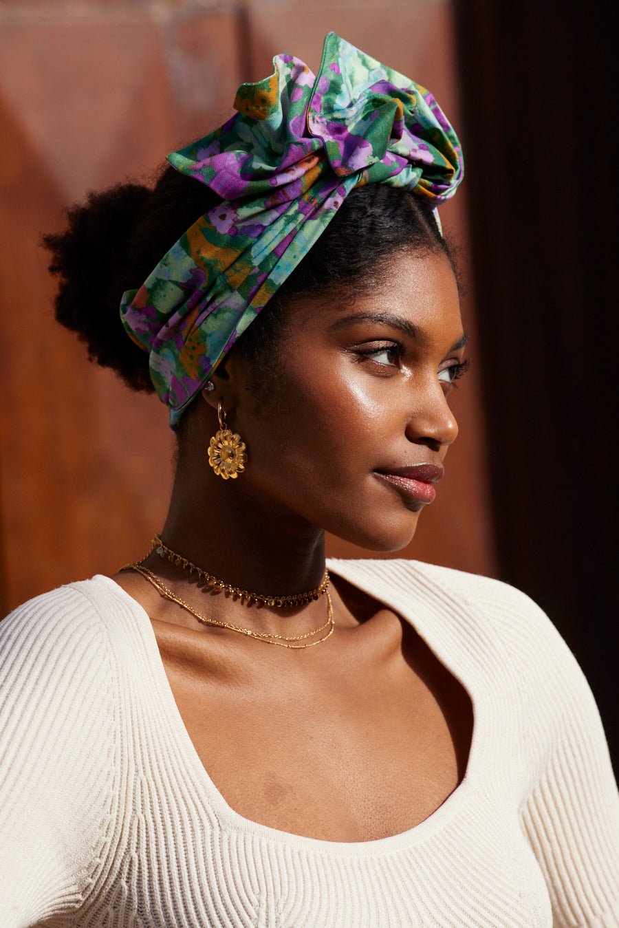 A mi-chemin entre le headband et le turban, notre bandeau flexible se noue en quelques secondes autour de votre tête grâce à ses tiges métalliques à sculpter selon vos envies !