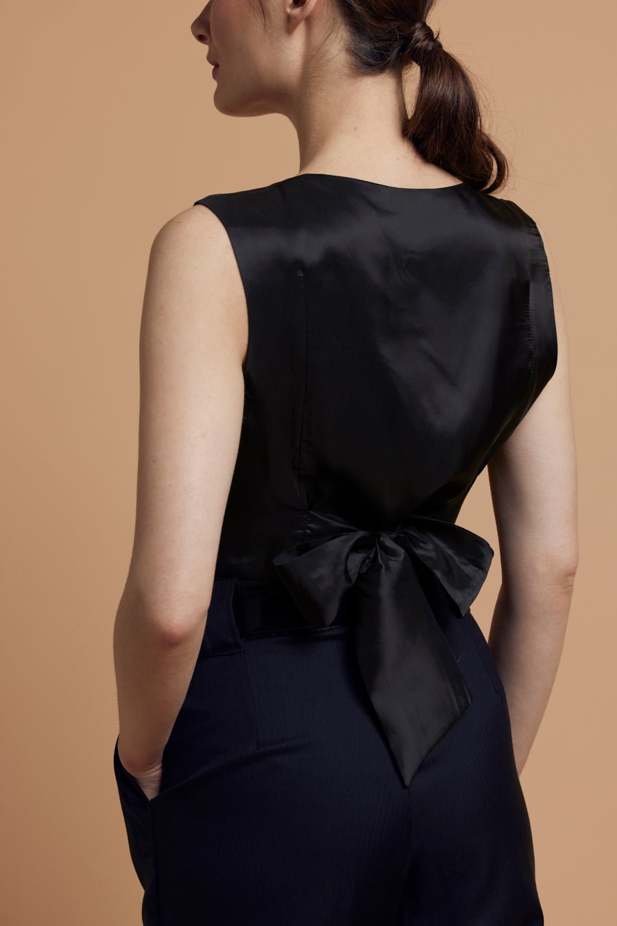 Sadie c’est le petit veston bien travaillé, avec un décolleté flatteur et un nœud dans le dos pour venir le cintrer joliment. Niveau longueur on l’a raccourci par rapport à un veston classique pour lui donner un côté plus féminin. Il peut se porter à même la peau pour un look décontracté juste un poil sexy.