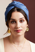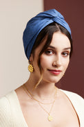 Avec sa teinte bleu jean, ce turban ajoute une touche décontractée mais élégante à votre look. Sa couleur polyvalente s’adapte parfaitement aux tenues casual ou habillées, apportant une touche moderne et chic.