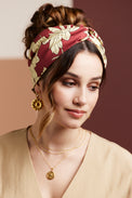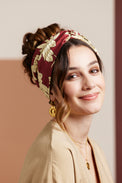 BANDEAU CHEVEUX PRET À ENFILER imprimé floral bordeaux et écru
