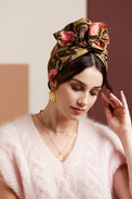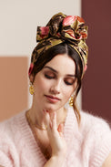 Turban complet à tige métallique imprimé floral vert kaki et rose