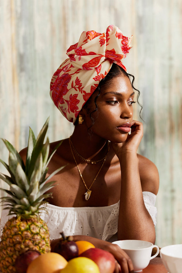 "Je suis artiste et je souffre d’une importante perte de cheveux. Porter ce turban entre deux prothèses capillaires, c’est parfait. Le tissu est magnifique et il est facile à porter. Même quand il y a du vent, il tient bien en place. Je vais en acheter d’autres !"
